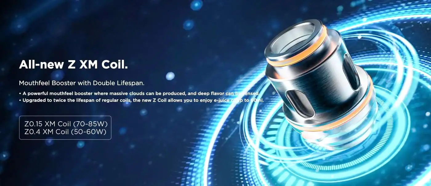 Coil Resistance | Z1 Mesh 0.4 Ohm, Z2 Mesh 0.2 Ohm, Z 0.15 Ohm, Z 0.25 Ohm, Z 0.4 Ohm XM (New), Z 0.15 Ohm XM (New) |